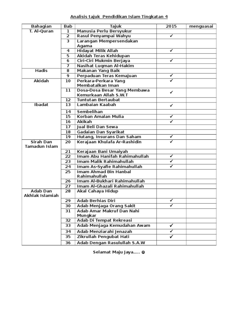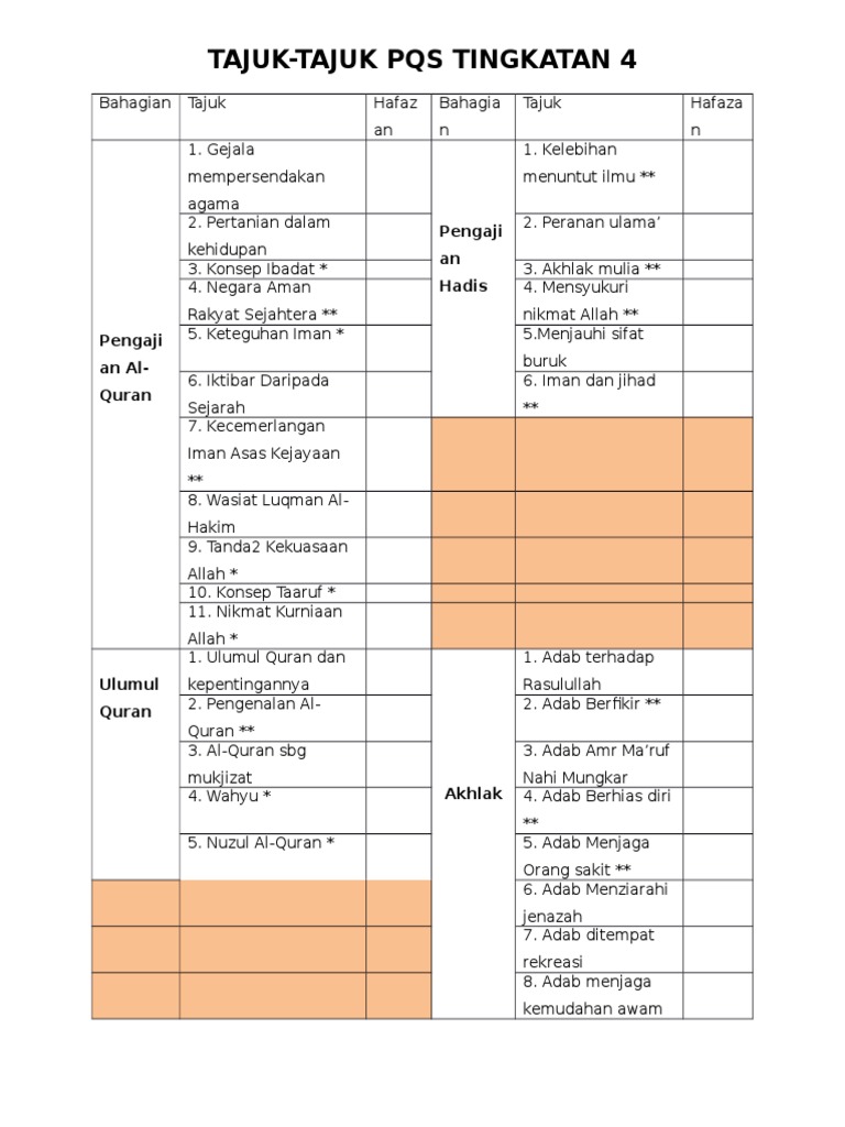 Tajuk Pendidikan Islam Tingkatan 4
