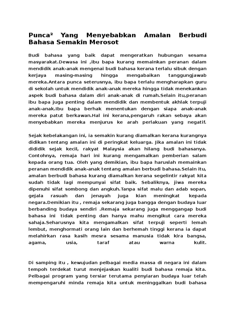 Usaha Memupuk Amalan Berbudi Bahasa Dan Kepentingannya Docx