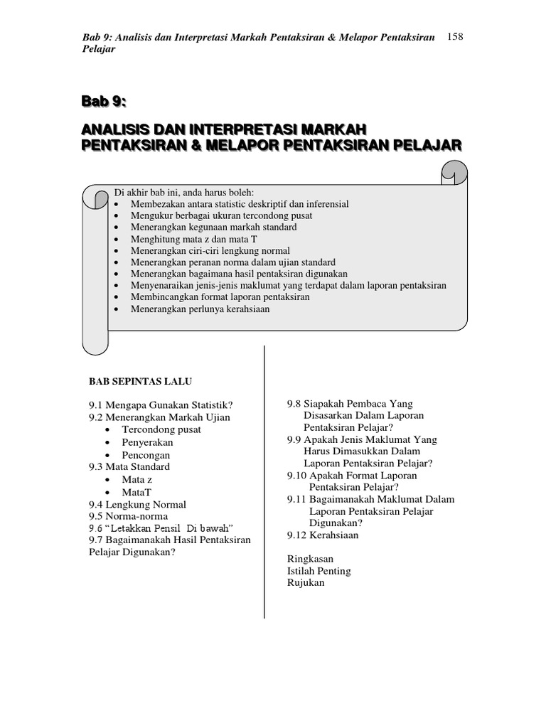 Bab 9 Analisis Interpretasi Markah Pentaksiran Melapor Pentaksiran Pelajar