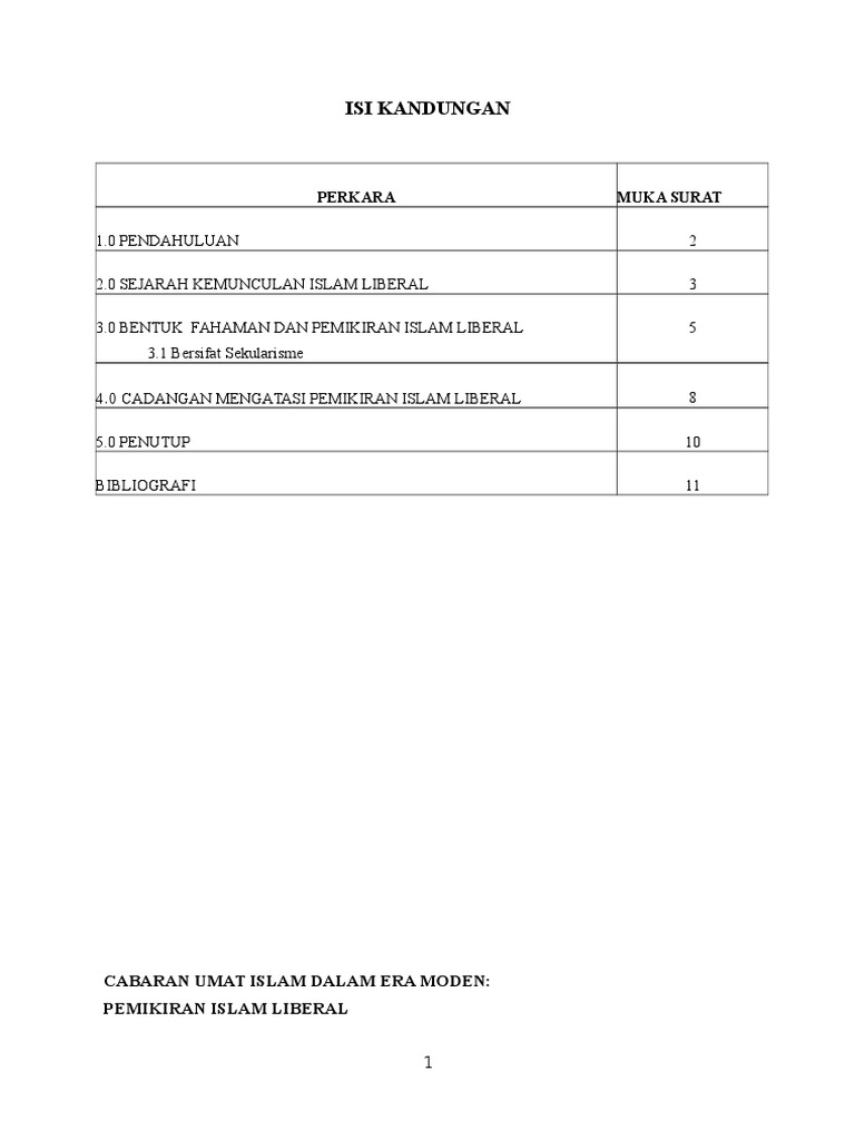 Titas Cabaran Umat Islam Dalam Era Moden Docx Isi Kandungan Kandungan 1 0 Pengenalan 2 0 Faktor Wujudnya Pluralisme Dalam Agama 3 0 Implikasi Fahaman
