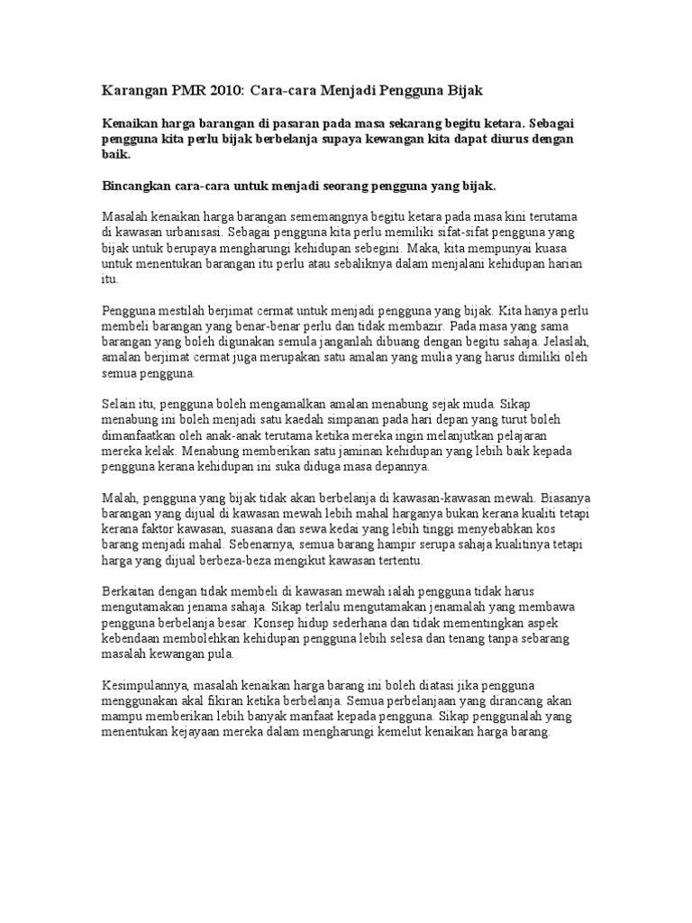 Doc Contoh Karangan 1 Bagaimana Menjadi Seorang Pengguna Yang Bestari Demi Mengatasi Masalah Ekonomi Negara Fatin Ngahh Academia Edu
