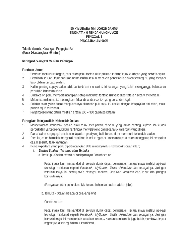 Contoh Soalan Karangan Pengajian Am Penggal 1 Malacca U