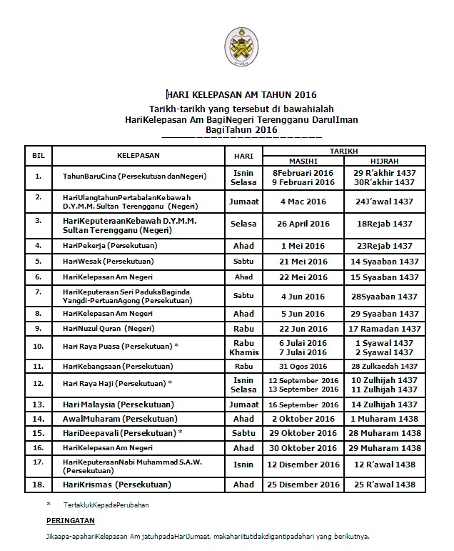 Kalendar Cuti Perlepasan Am 2016 Persatuan Guru Guru Sar Kafa Daerah Kuantan