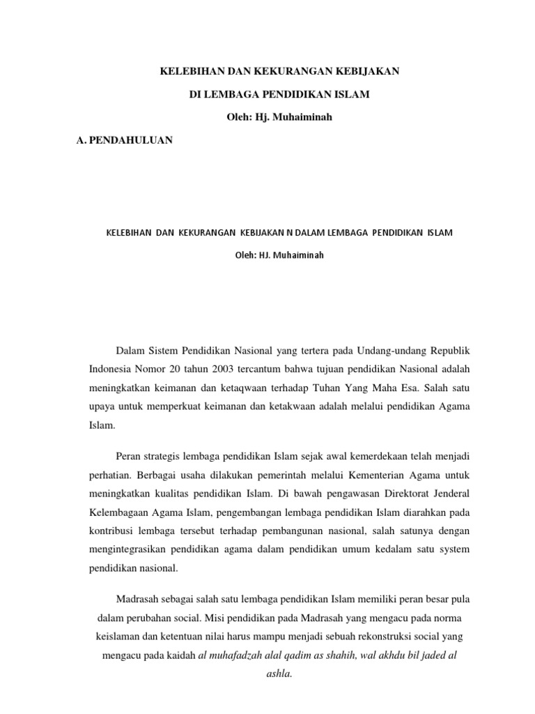 Kelebihan Dan Kekurangan Di Lembaga Pendidikan Islam