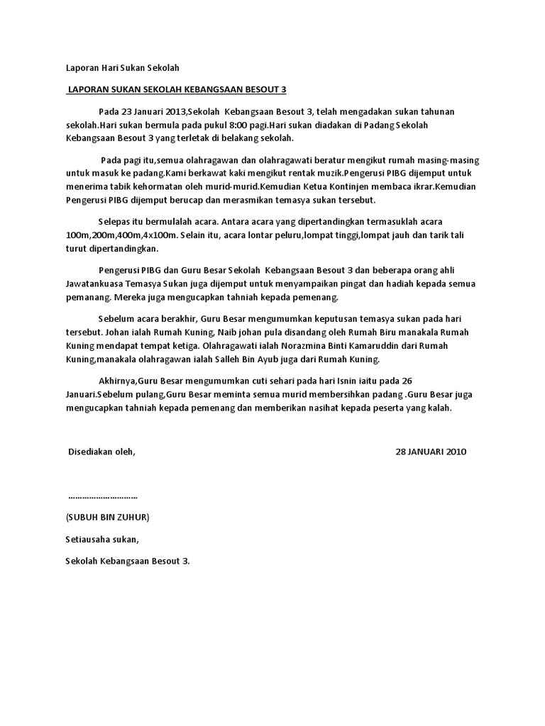 Laporan Hari Sukan Sekolah