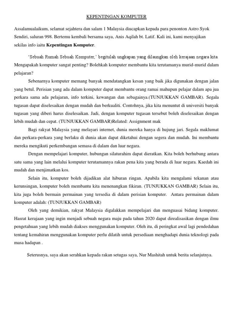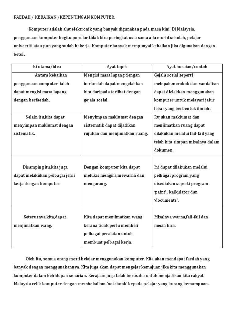 Bahasa Nadi Bangsa Karangan Upsr Fakta Faedah Komputer