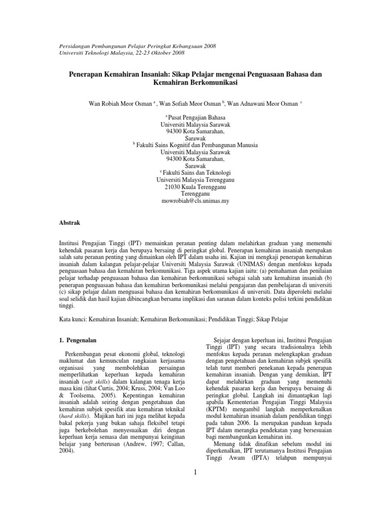 2 mengenalpasti kepentingan kemahiran insaniah dan keperluannya dikehendaki oleh sektor awam dan swasta untuk sesuatu bidang kerjaya khususnya yang tmembabitkan lulusan institusi pendidikan islam. Kepentingan kemahiran insaniah soft skills posted on july 22 2014 posted in pengetahuan am teknik membelajar efektif menurut statistik daripada kementerian pengajian tinggi dalam laman web rasminya terdapat seramai 337 884 orang graduan ijazah sarjana muda yang bergraduasi di semua institusi pengajian tinggi awam dan swasta pada tahun 2005 hingga 2009. 3 meneliti secara makro dan mikro fungsi dan keberkesanan semua elemen kemahiran insaniah yang berkaitan dengan lulusan pengajian syariah.