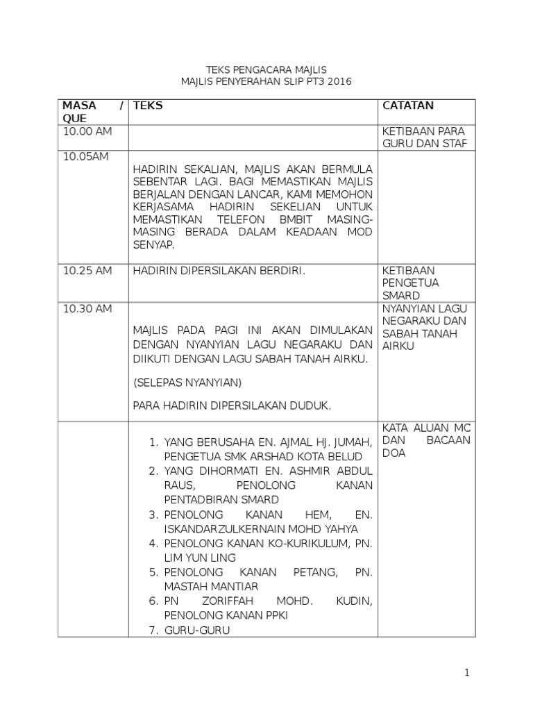 Teks Pengacara Majlis Penyerahan Slip Keputusan Pt3 2016 Doc