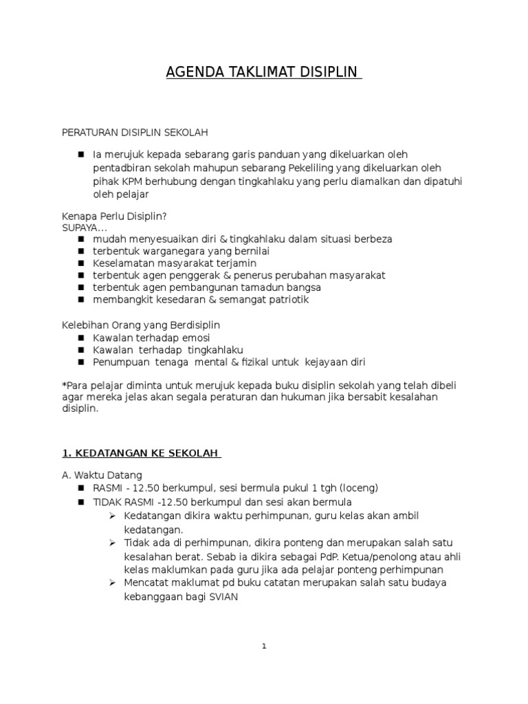 Agenda Taklimat Disiplin 1 Kedatangan Ke Sekolah