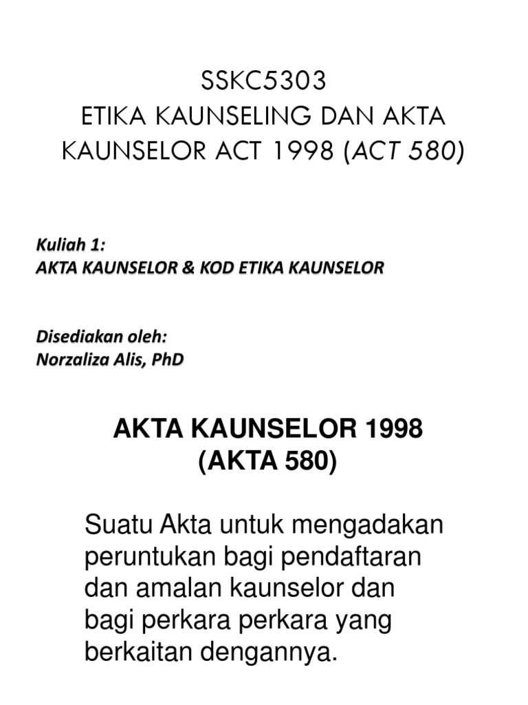Sskc5303 Etika Kaunseling Dan Akta Kaunselor Act 1998 Act 580