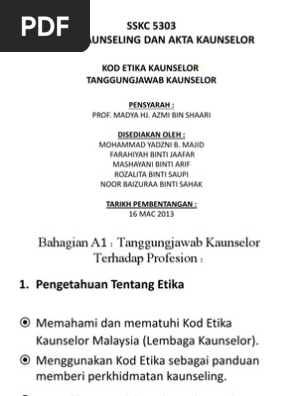 Pdf Pengenalan Kepada Bidang Kaunseling Etika Syifaa Zul Academia Edu