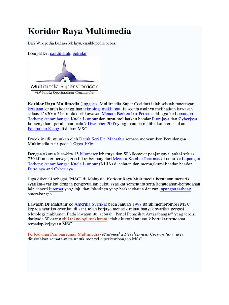 Koridor Raya Multimedia Multimedia Super Corridor Msc