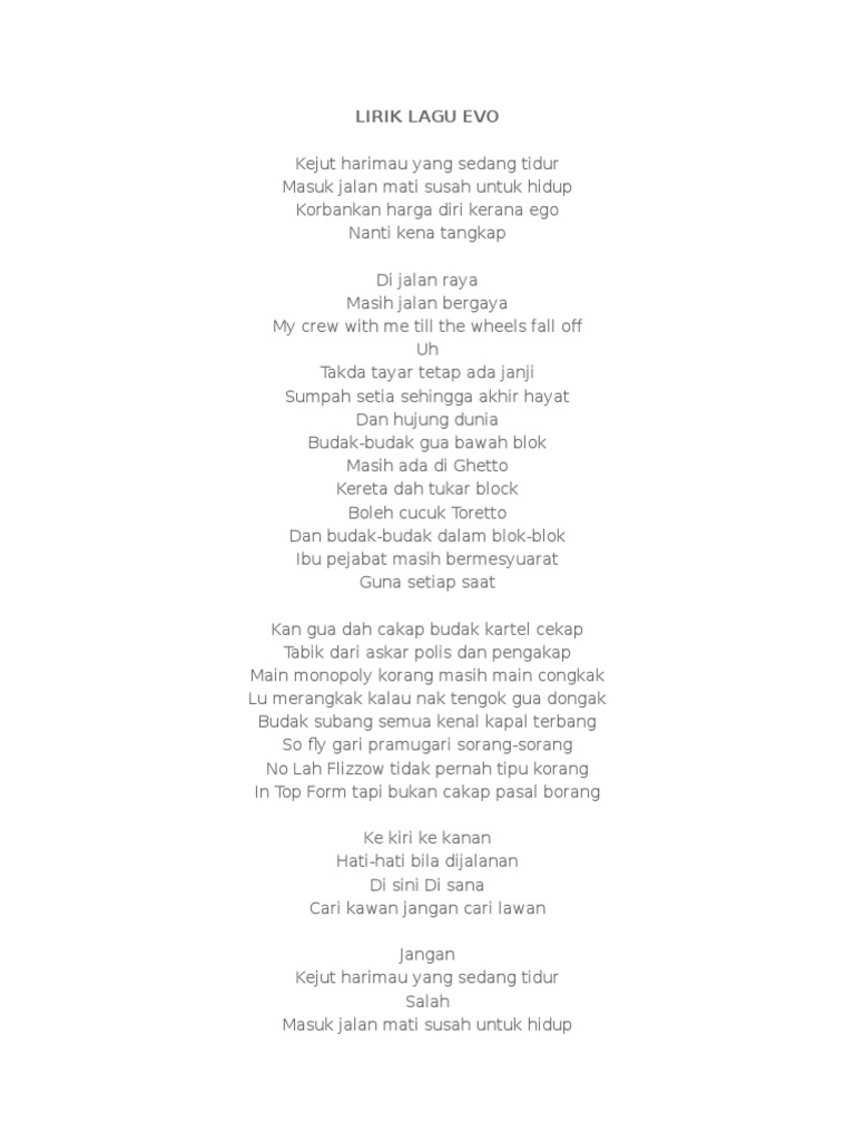 Lirik Lagu Evo