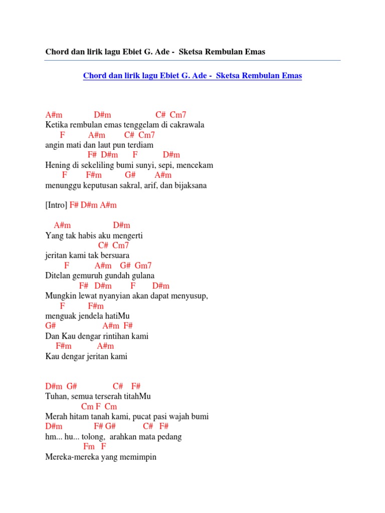 Chord Dan Lirik Lagu Ebiet G Ade Sketsa Rembulan Emas