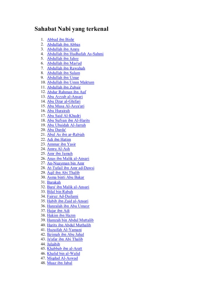 Sahabat Sahabat Nabi Muhammad Saw Yang Terkenal Starnews Id