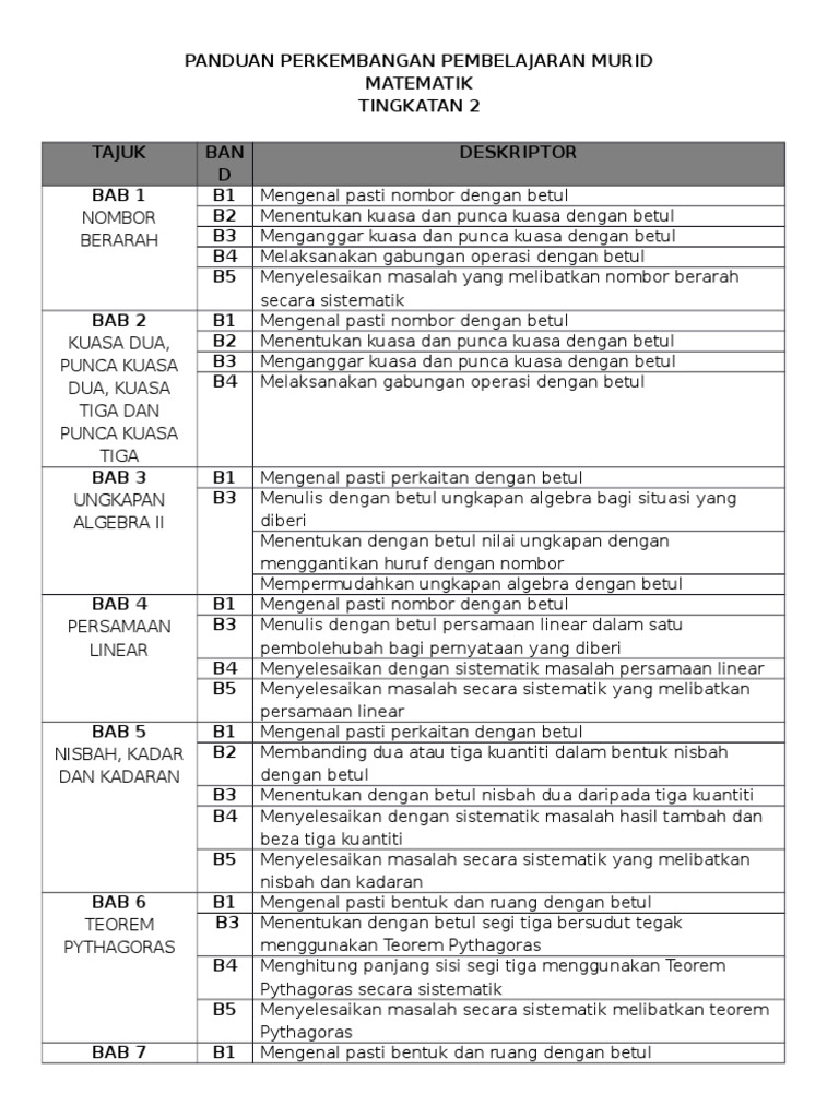 Panduan Perkembangan Pembelajaran Murid Pppm Tingkatan 2