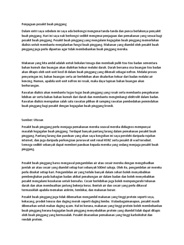Ketahui Pantang Larang Yang Pesakit Buah Pinggang Perlu Tahu