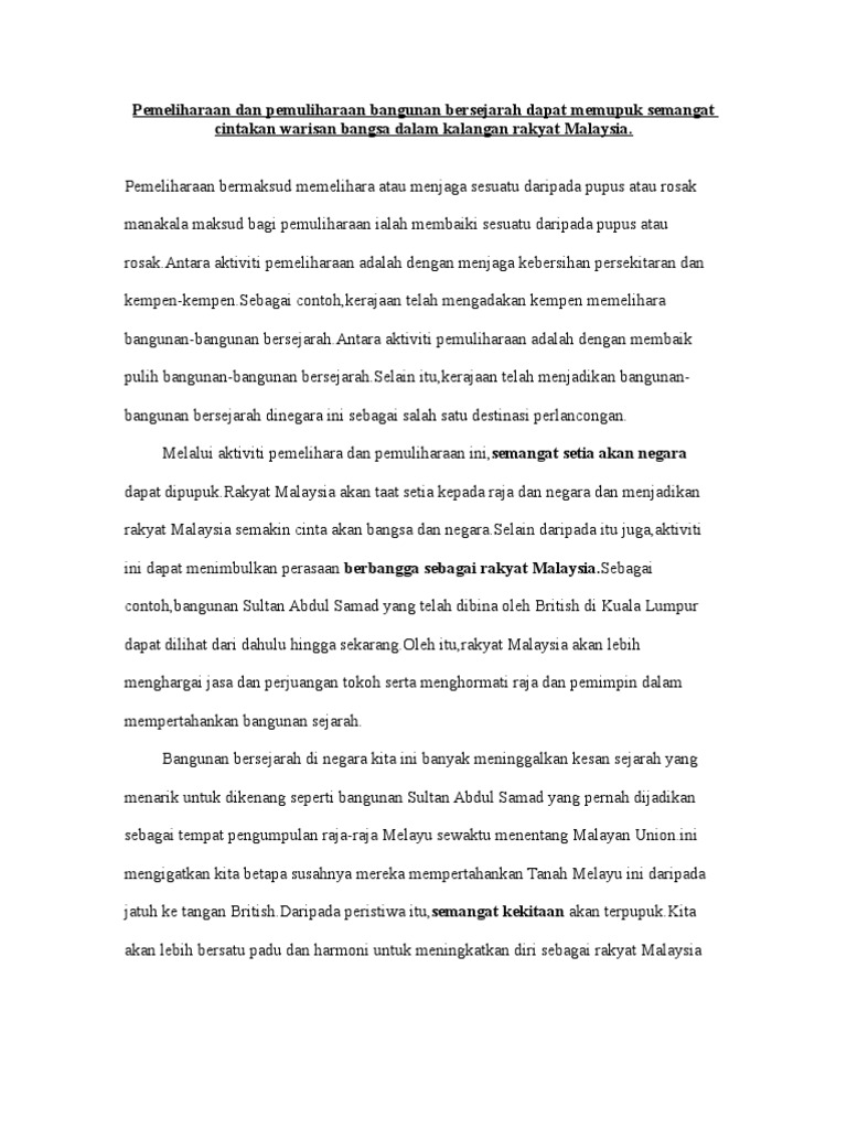 Contoh Karangan Usaha Usaha Memelihara Dan Memullihara Bangunan Bersejarah