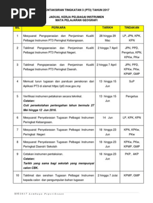 Jadual Kerja Pelbagai Instrumen Geografi 2017