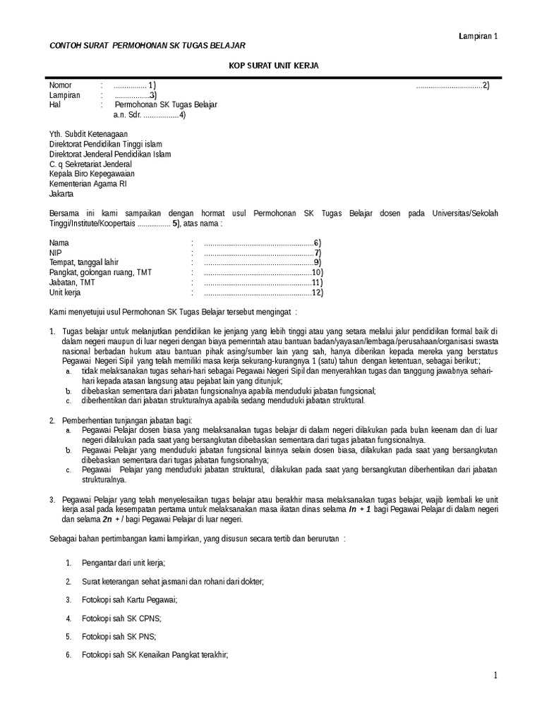 Contoh Surat Permohonan Perpanjangan Tugas Belajar Contoh Seputar Surat