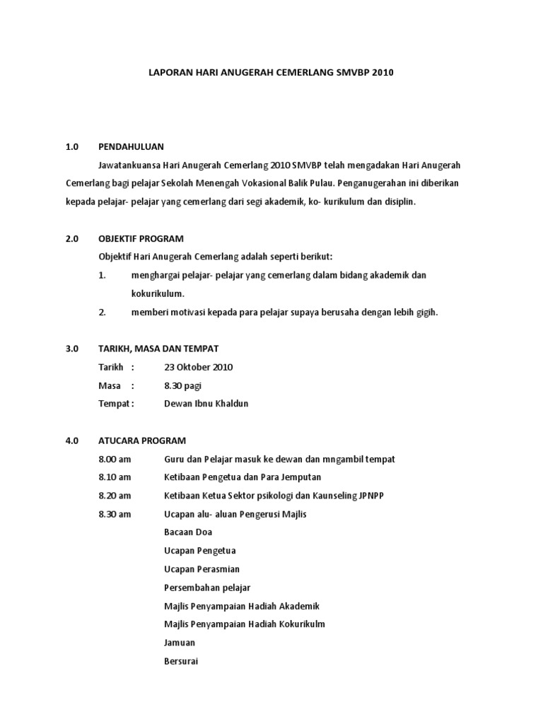 Doc Hari Anugerah Cemerlang Laporan Zubaidah Abu Bakar Academia Edu