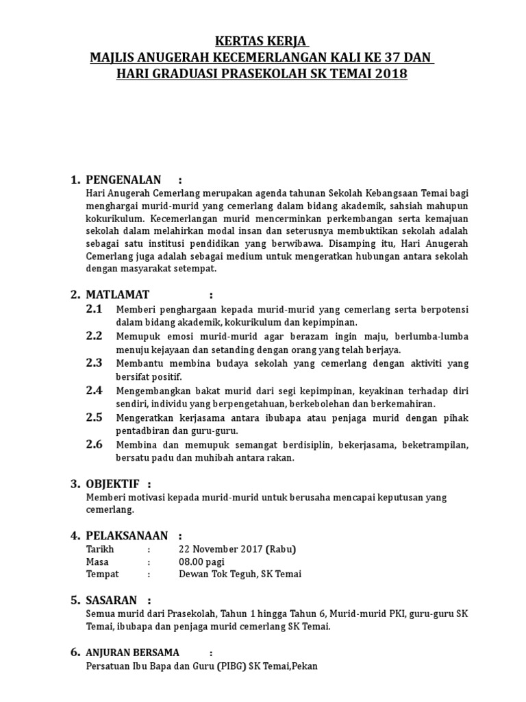 Kertas Kerja Hari Kecemerlangan Sk Temai 2018 Doc