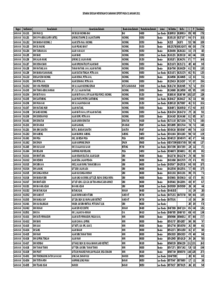 Senarai Sekolah Menengah Di Sarawak Seperti Pada 31 Januari 2011