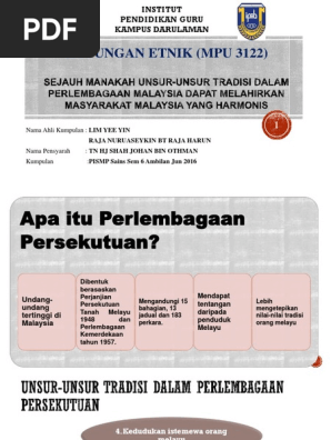 Ppt Unsur Unsur Tradisi Dalam Perlembagaan Persekutuan Dedisaputra Herman Academia Edu