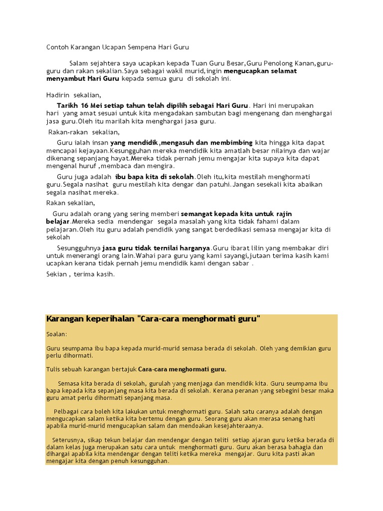 Contoh Karangan Ucapan Murid Sempena Hari Guru