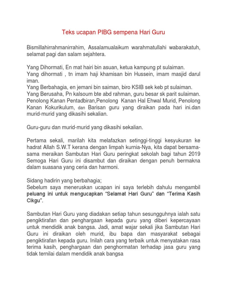 Teks Ucapan Ydp Pibg Hari Guru